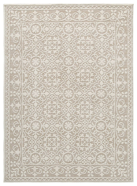 Looking for casual elegance in light, neutral colors for the floor? Flower power adorns with this medium area rug. Its intricate trellis pattern repeats with flowers, leaves and so much more in ivory color set against a beige backdrop. This medium pile rug is sure to deliver soft comfort combined with beauty underfoot.