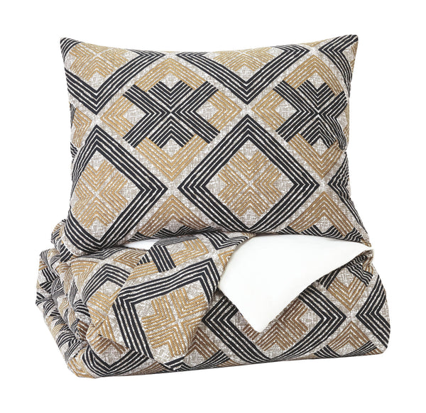 Elevate the look and feel of your bedroom with this bold and beautiful comforter set. Its crisp and clean geometric pattern adds a decidedly modern mood. Cotton cover brings a dreamy touch.