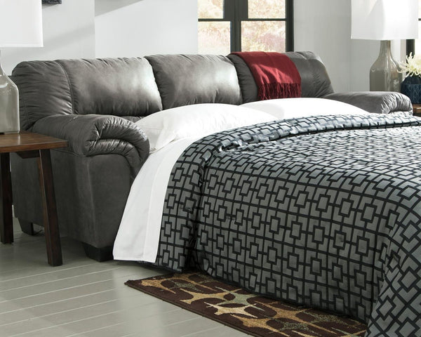 If you love the cool look of leather but long for the warm feel of fabric, you’ll find this sofa sleeper fits the bill beautiy. Rest assured, the textural, multi-tonal upholstery is rich with character and interest—while plush, pillowy cushions merge comfort and support with a high-style design. A pull-out -size mattress accommodates overnight guests.