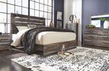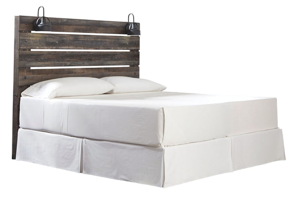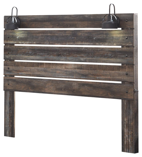 When merged in just the right way, rustic and industrial styles can make one happy marriage. Case in point: this panel headboard. A refined take on barn board beauty, its complex, replicated wood grain showcases hints of burnt orange and teal tones for a sense of weatherworn authenticity. Love to read in bed? You’re sure to find the retro-chic light sconce and USB plug-ins on the open-slat style headboard such a bright idea.