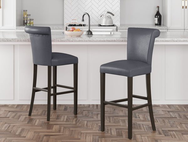 • The Briar III 30" upholstered bar stool features faux leather brushed upholstery and curved back