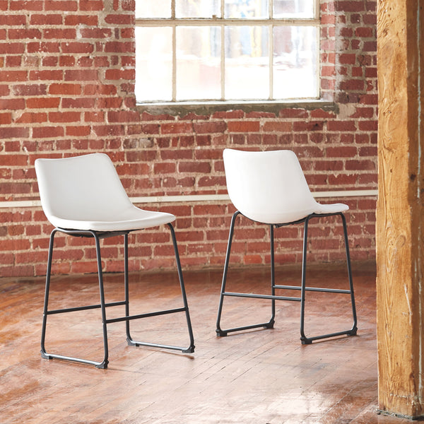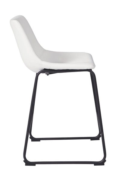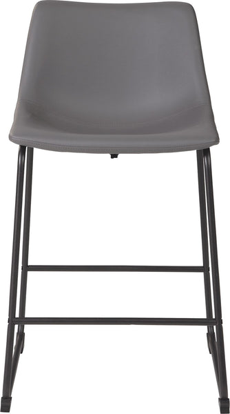 With its distinctive contoured bucket seat and tubular metal base, this bar stool serves up a fresh twist on mid-century inspired style. Chic gray faux leather upholstery adds to the aesthetic. What a timeless look for eat-in kitchens and casually cool dining rooms.
