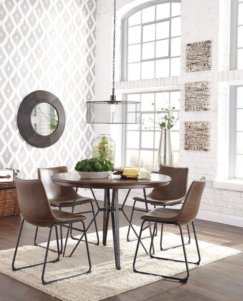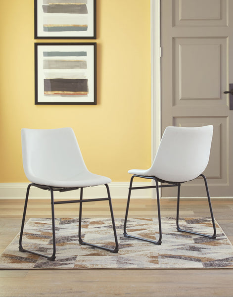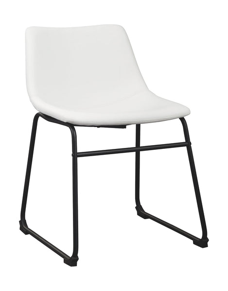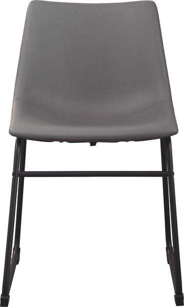 With its distinctive contoured bucket seat and tubular metal base, this dining chair serves up a fresh twist on mid-century inspired style. Chic gray faux leather upholstery adds to the aesthetic. What a timeless look for eat-in kitchens and casually cool dining rooms.