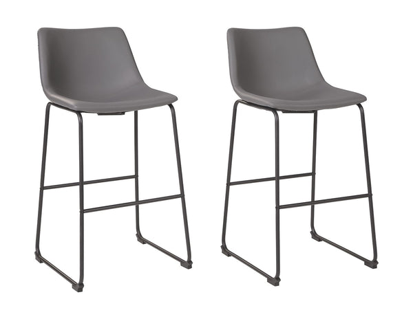 With its distinctive contoured bucket seat and tubular metal base, this bar stool serves up a fresh twist on mid-century inspired style. Chic gray faux leather upholstery adds to the aesthetic. What a timeless look for eat-in kitchens and casually cool dining rooms.