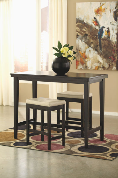 This sleek bar stool might be big on style, but its petite scale is ideally suited for small spaces. Dark finish and minimalist design make Kimonte the epitome of contemporary decor. Faux leather upholstery is hardwearing and easy to clean—perfect for the dining room.