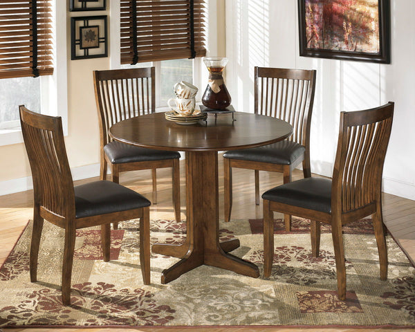 With a warm medium brown finish flowing beautifully over the sleek contemporary design, the “Stuman” dining collection features comfortably shaped comb back chairs with polyurethane padded seats to add a level of comfort and style to any dining experience.