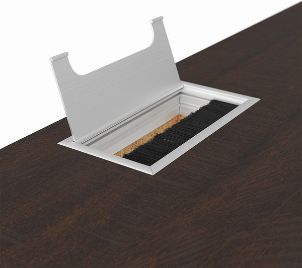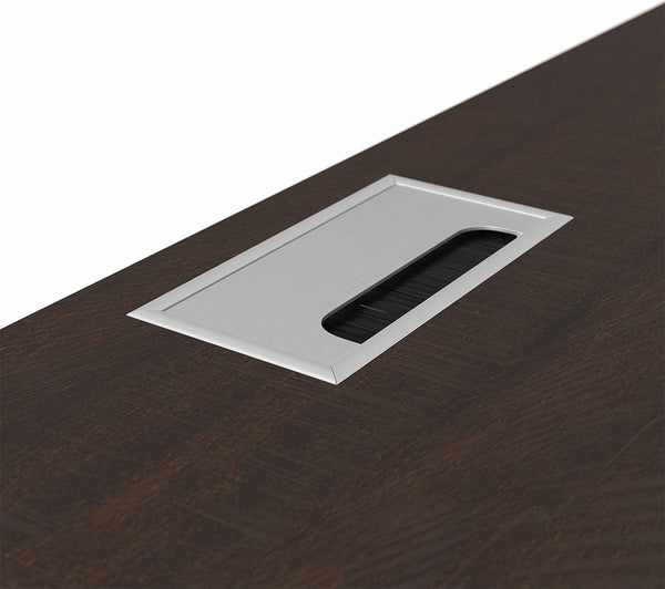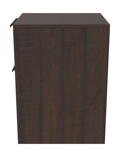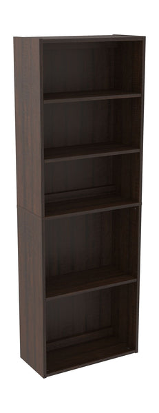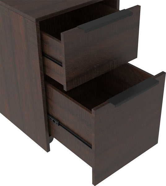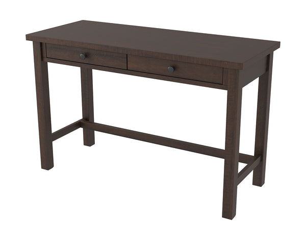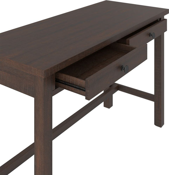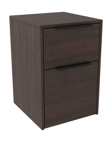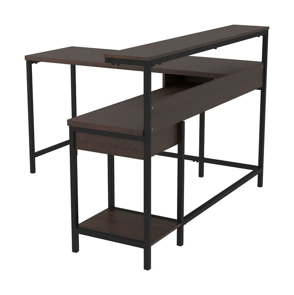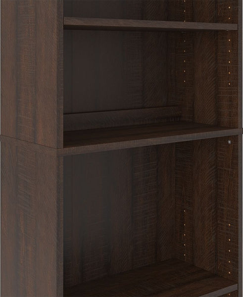Modern farmhouse design with an Urban attitude. Made with a paper laminate featuring a replicated rough sawn wood grain and engineered wood substrate. Black metal frames. Each piece is thoughtfully designed to offer style and function to any home office. Drawers use ball bearing side glides for smooth operation. Doors use European style hinges. Desks are designed for easy cord management. These pieces are designed to be RTA flat pack for express ship opportunity. H283-15 small bookcase is 30”H with one adjustable shelf. H283-16 medium bookcase is 36”H with two adjustable shelves.