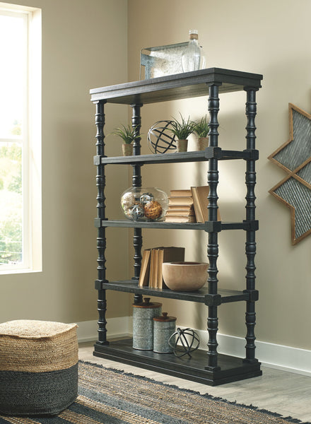 With its antique black finish, plank-effect styling and charming turned details, this bookcase is sure to elevate the look and feel of a room. Whether you embrace traditional decor or fancy modern farmhouse style, this 5-tier open bookcase will look right at home.