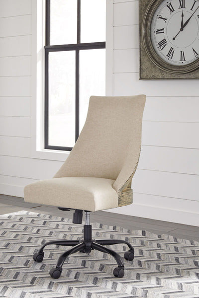 Working an ultra-cool sense of style just got a whole lot easier thanks to this swivel home office desk chair. Upholstered bucket seat covered in a black faux leather merges mid-century flair with modern comfort.