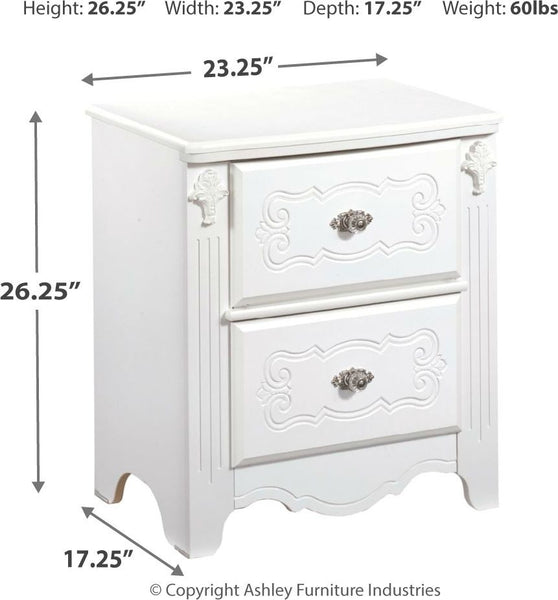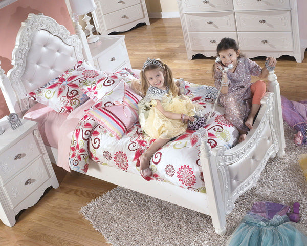 With the exquisite beauty of formal French style brought to life within a country motif, the "Exquisite" youth bedroom collection is sure to create a sense of magic and wonder to any child's bedroom. With a luminous replicated white paint finish flowing smoothly over the decorative embossing and beautifully turned detailing, this furniture is perfectly designed for any little girl's room. The satin nickel color hardware and stylish appliqués and rosettes adorn this furniture with a traditional beauty that radiates from the collection. Create the fairy tale bedroom for your child with the elegant design of the "Exquisite" youth bedroom collection.