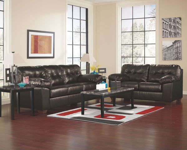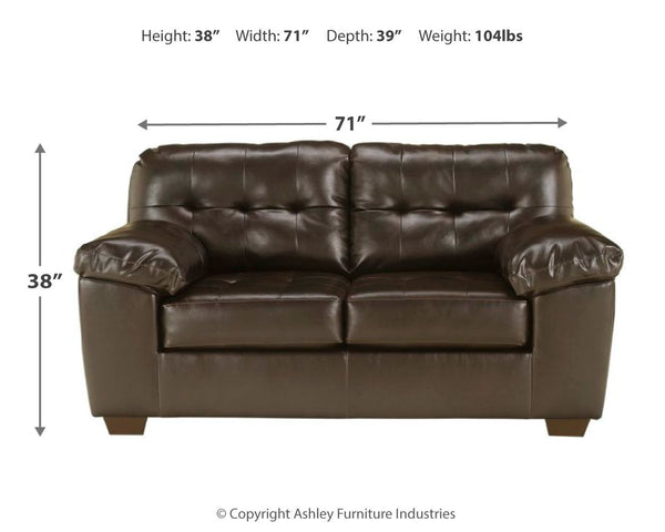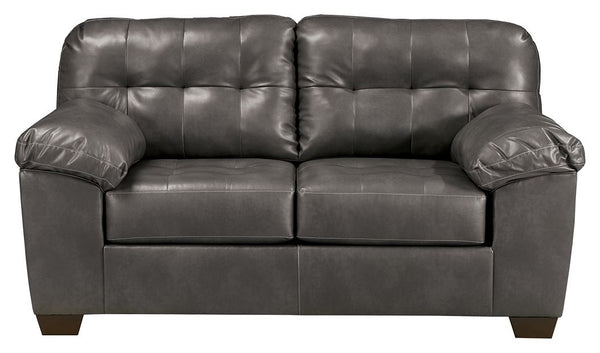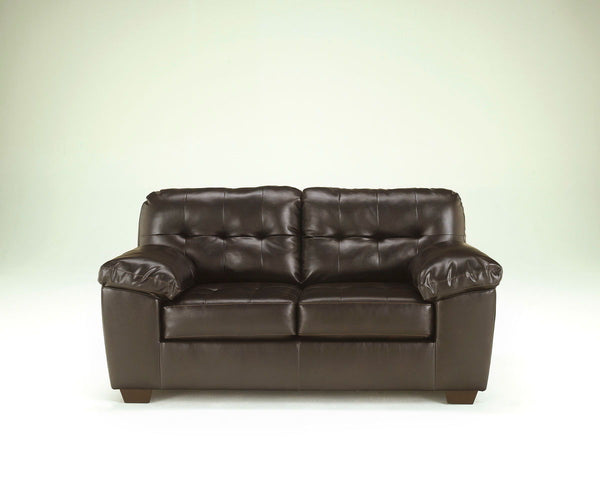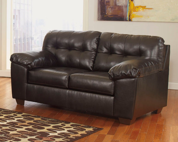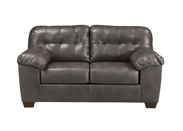 Whether you’re a bit tight on living space or you simply want an excuse to get closer, it’s easy to see how this loveseat might be the ideal fit. Practical faux leather upholstery is enriched with subtly tufted detailing, a supportive back and padded arms. The result: comfort and style that go hand in hand.