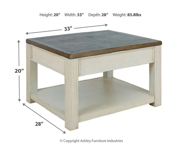 Store, serve and showcase your favorite things with this lift top cocktail table. Its textured antique white finish creates a vintage two-tone look that will endure for years.
