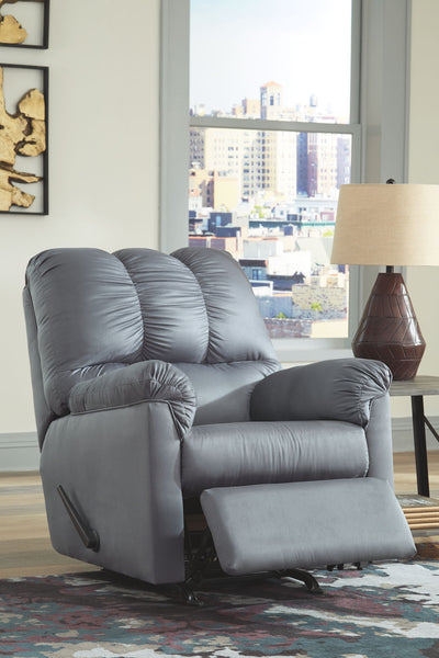 Talk about fine lines and great curves. That’s the beauty of this rocker recliner—made to suit your appreciation for clean, contemporary style. Comfy pillow top armrests, designer tailoring and an ultra-soft upholstery that holds up to everyday living complete this fashion statement.