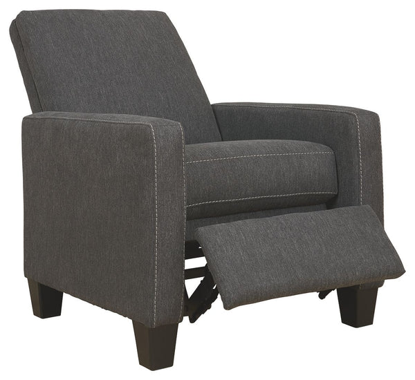 If giving up comfort for design just isn’t your style, the Dattner recliner is made for you. With its modern track arm and exposed legs, this reclining chair takes elegance as seriously as it takes relaxation. The herringbone texture and decorative stitching dress up your space as smartly as a well-tailored suit.