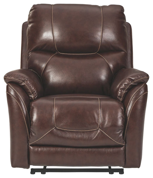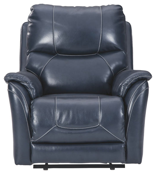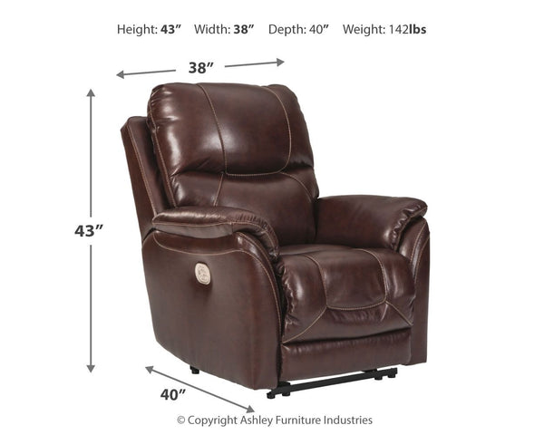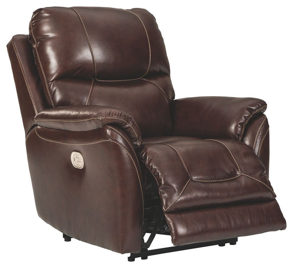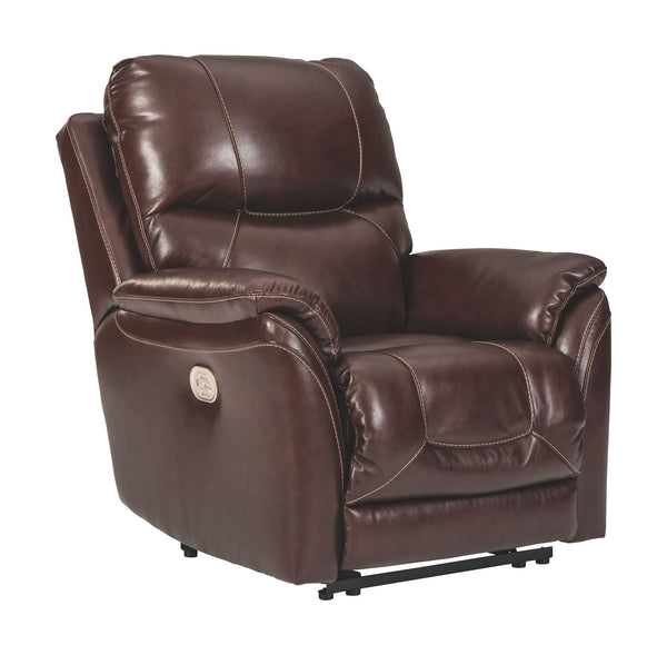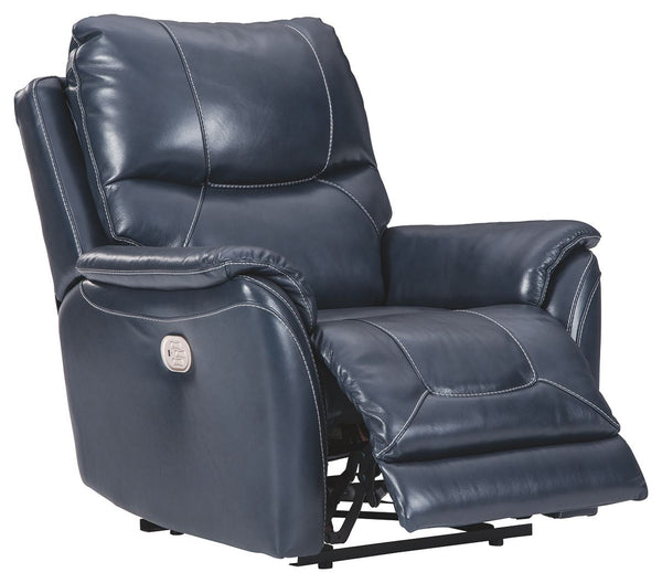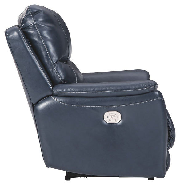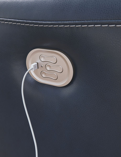 What could be better than the indulgent feel of genuine leather? How about fashion-forward looks to match. And a one-touch power control that delivers unsurpassed comfort and support. Rest assured, this power recliner with 43" high back is designed to pamper from head to toe. Sporting a real leather seating area for buttery-soft pleasure, this contemporary recliner with distinctive jumbo stitching takes it up a notch with one-touch power lumbar support and an Easy View™ power adjustable headrest that lets you fully recline and still have a primo view of the TV. Let’s not forget the USB plug-in that lets you recharge while you unwind.