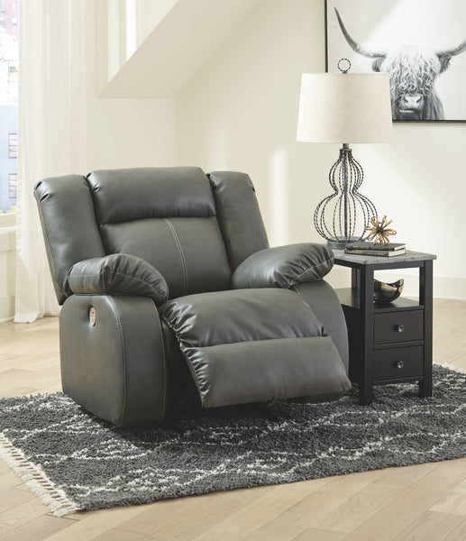 If highly contemporary looks and a heavenly feel sit well with you, rest your eyes on this power rocker recliner. Decadently soft, the padded velvet upholstery is enriched with jumbo contrast stitching and dramatic cut-and-sew lines for fashion-forward flair. Radius cut arm frame adds cool, curvaceous interest. At your fingertips: one-touch power control with a zero-draw USB plug-in that’s not only convenient but also energy efficient. When it comes to high style at a down-to-earth price, this power recliner really brings it home.