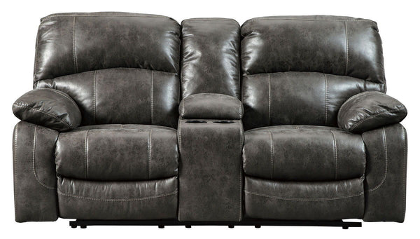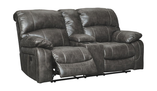 There is power in beauty with this power reclining loveseat. Handsome crackle effect in the upholstery gives the appearance of supple leather but this recliner is all about the warmth of fabric. Contrast jumbo stitching adds a stylish touch. Double stuffed armrests cuff your body in comfort. Adjust your head and recline back with one easy touch.