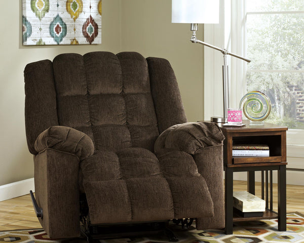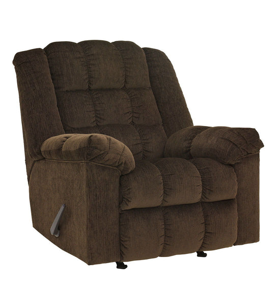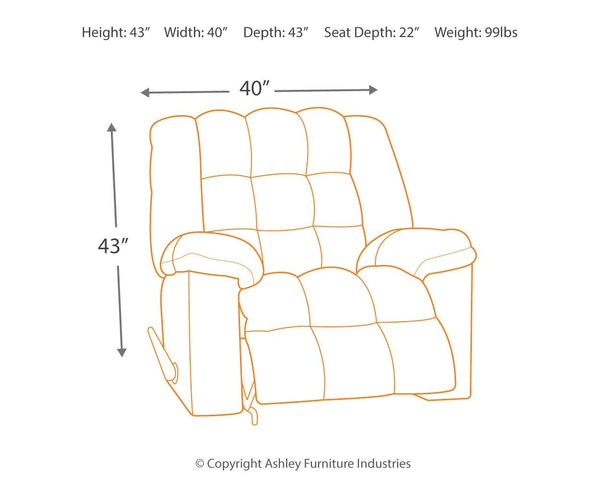 An “easy chair" that’s wonderfully easy on the body and the budget. This recliner delights the senses with ultra plush upholstery in a handsomely textured twill. Divided bustle design and puckered stitching meld comfort and style. Ample pillow top armrests make it an all-the-more restful place to unwind.