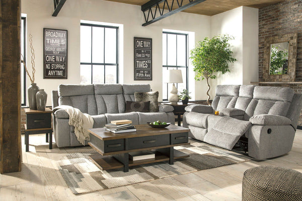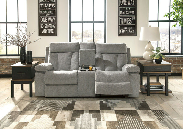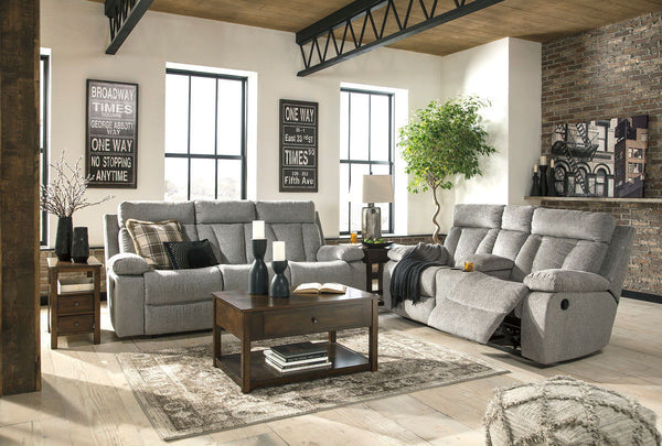 Mitchiner - Fog - Rocker Recliner 40"W x 40"D x 42"H - 108.0 lbs Mitchiner - Fog - REC Sofa w/Drop Down Table 87"W x 40"D x 42"H - 229.0 lbs Mitchiner - Fog - DBL Rec Loveseat w/Console 77"W x 40"D x 42"H - 214.0 lbs