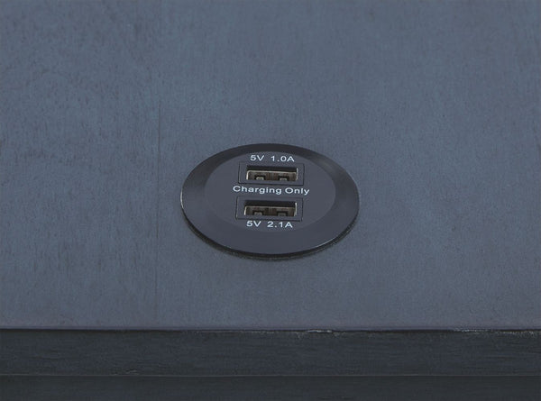 A study in seeming contradictions, this accent table is both practical and stylish. A storage drawer lets you keep necessary items in reach while out of sight, and two USB ports keep your devices powered up as you wind down. The clean lines and antique gray finish give this piece a high-design profile to elevate your space.
