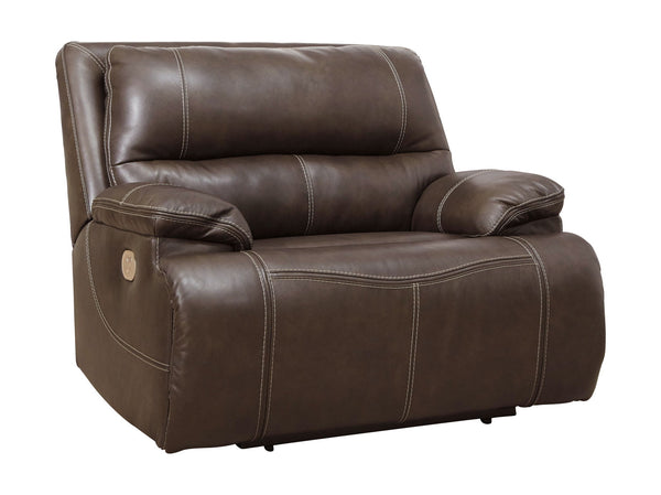 Life is so much better when you can enjoy the pleasure of real leather—at a price to put you at ease. That’s exactly what you get with this wide seat power recliner. Thanks to real leather throughout the seating area, you've got a recliner that feels like a million bucks but won’t break the bank. Tailored to suit those with an eye for contemporary design, this power recliner is dressed to impress with an upscale matte finish, clean-lined divided back tufting, distinctive jumbo stitching and chic pillow top armrests. Perhaps best of all: an Easy View™ power adjustable headrest lets you recline back and still have a primo view of the TV.