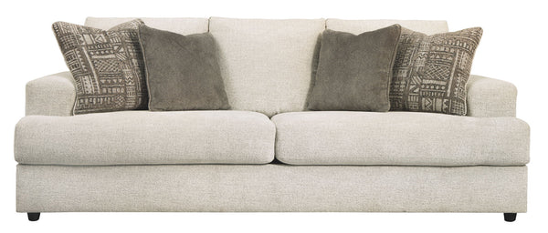 Flaunting a trendsetting silhouette, this sofa sleeper puts the contemporary in your contemporary home. Its “three over two” profile eliminates the center seat cushion, giving you elongated plushness and deep seating. Microfiber fabric satisfies your need for a piece that feels as good as it looks. Accented with soft jacquard chenille throw pillows for a splash of geometric pattern and color contrast. Pull-out mattress in quality memory foam comfortably accommodates overnight guests.