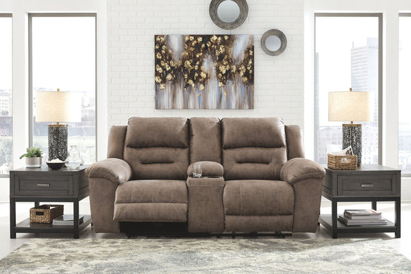For those that love the cool look of leather but long for the warm feel of fabric, this power reclining loveseat delivers both with ease. Its high-performance padded faux leather is remarkably durable and easy to clean, just the thing for family spaces. When it’s time to relax, the one-touch power control puts the perfect position at your fingertips. Channel-stitched back cushions provide indulgent lumbar support for maximum seating comfort—not to mention fashion-forward flair.