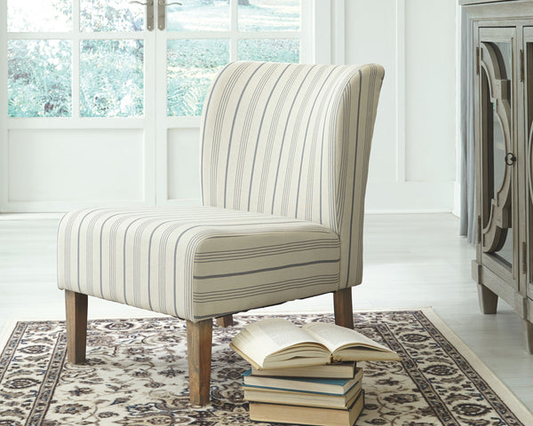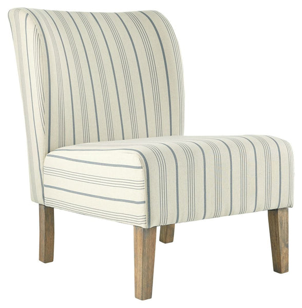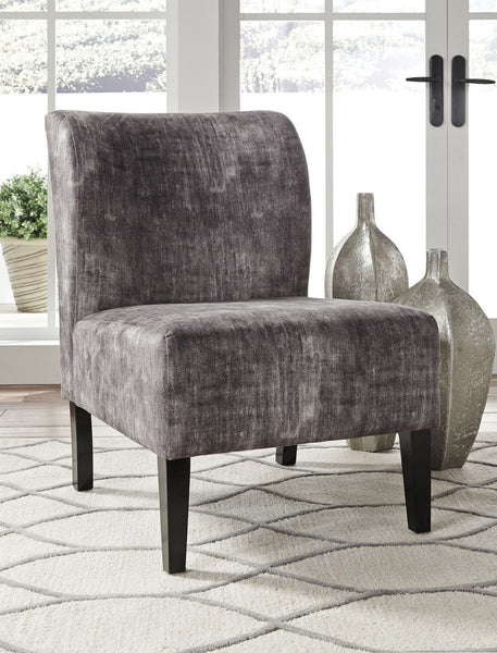 This slipper chair wows with elegant upholstery and sleek, linear design. Cool and casual, this chair is the perfect accent for the living room, dining room or bedroom. Gray-washed finish gives a fresh, vintage appeal.
