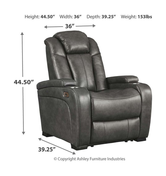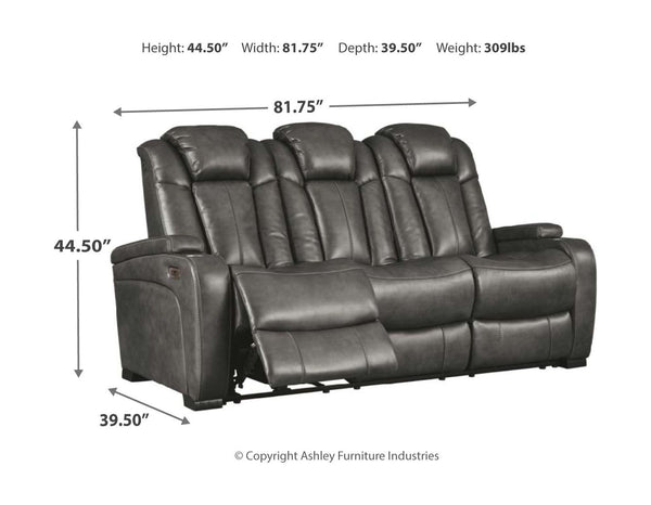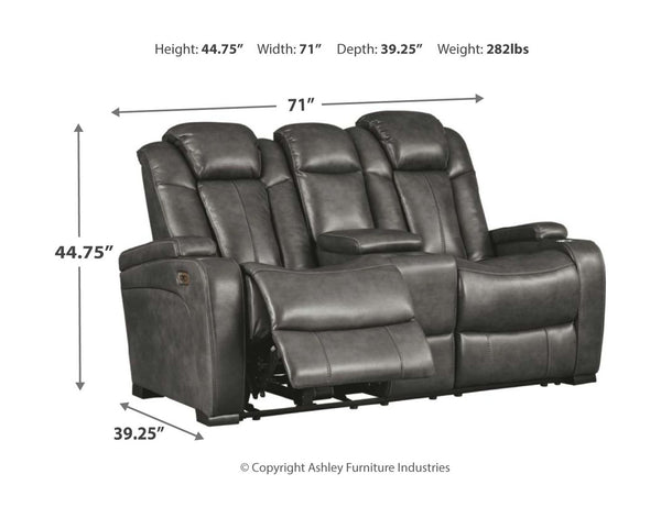Turbulance - Quarry - PWR Recliner/ADJ Headrest37"W x 39"D x 44"H - 153.0 lbs Turbulance - Quarry - PWR REC Sofa with ADJ Headrest84"W x 39"D x 44"H - 309.0 lbs Turbulance - Quarry - PWR REC Loveseat/CON/ADJ HDRST74"W x 39"D x 44"H - 282.0 lbs